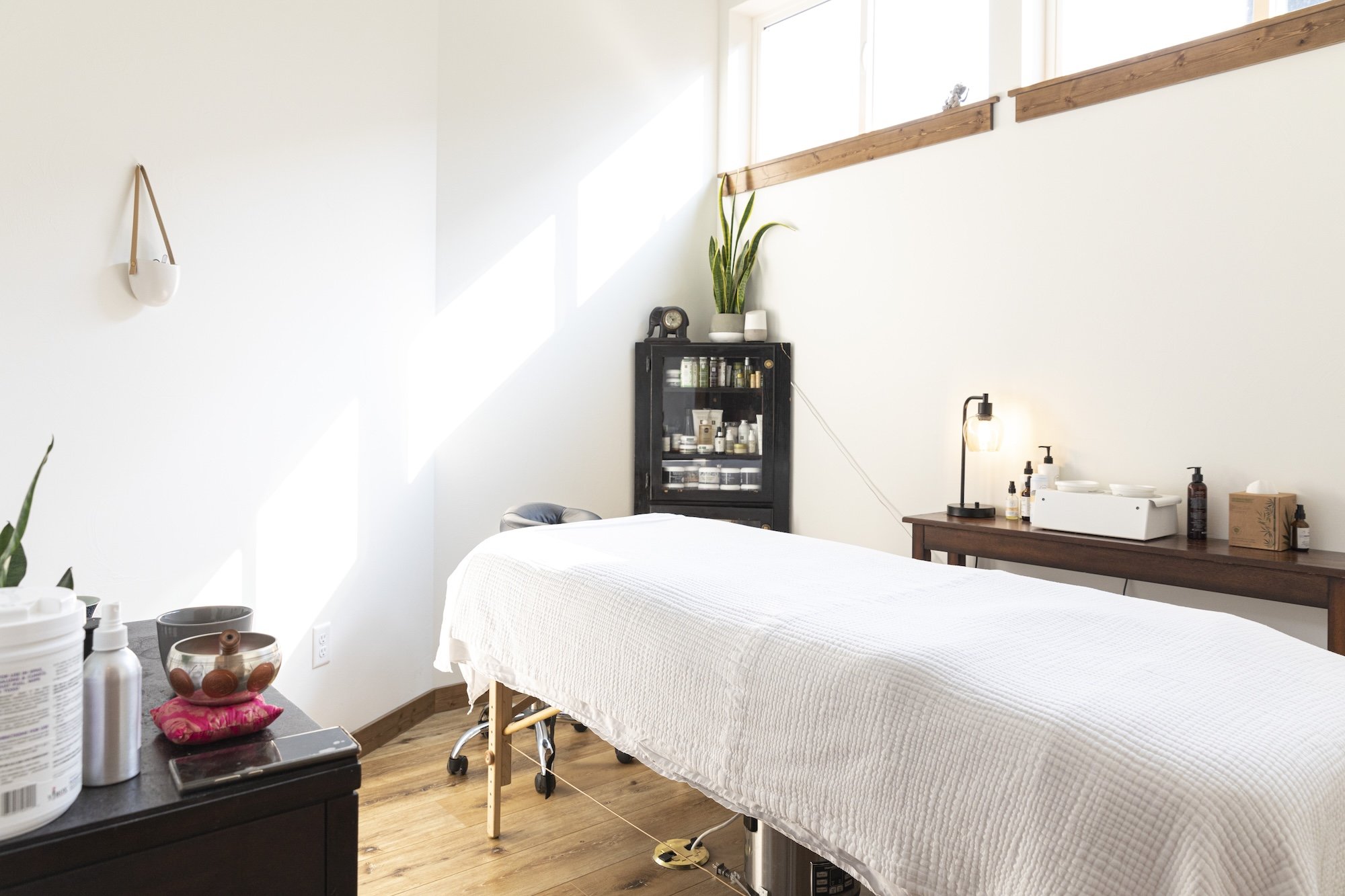 Step into a light, bright sanctuary designed to help your nervous system begin calming the moment you arrive. The space is intentionally crafted to feel peaceful and welcoming, setting the tone for restoration before your treatment even begins. From the calming scent of therapeutic massage oils to the thoughtfully curated retail area, every detail supports your wellness journey.